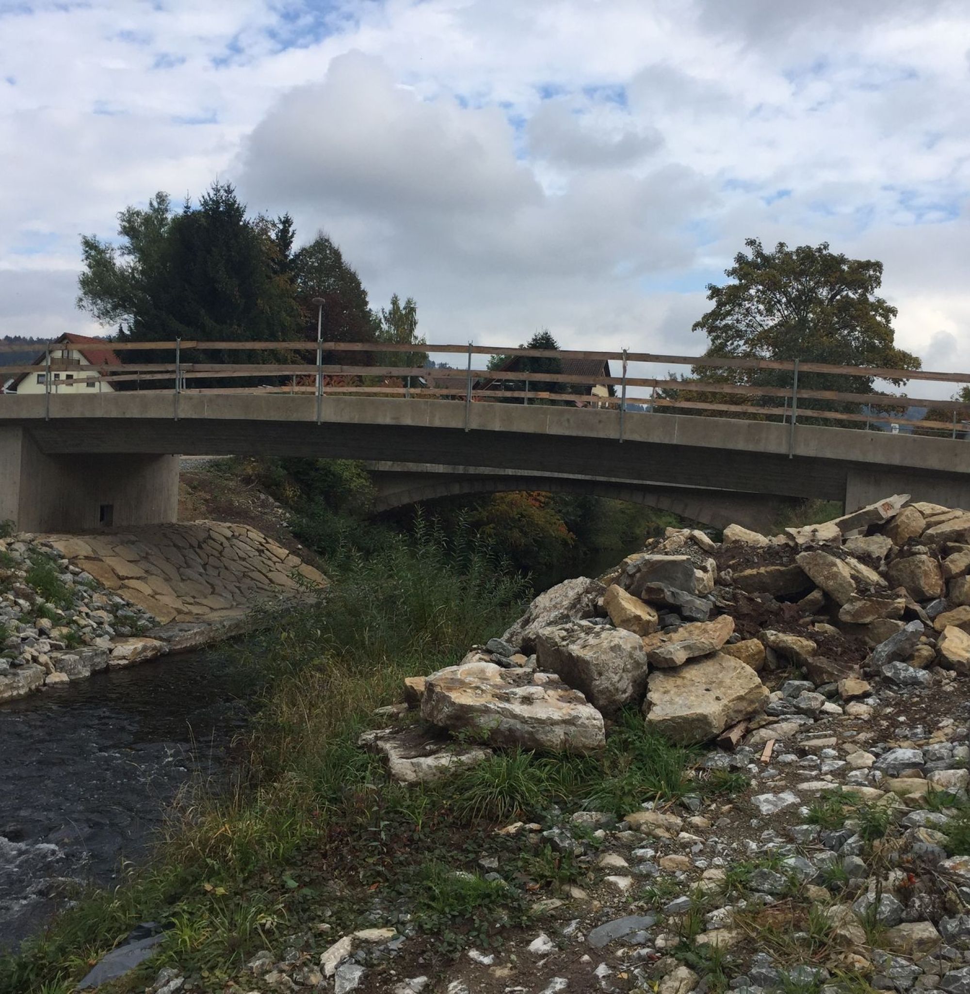 Die Gradiente des neuen Bauwerks wurde so angehoben, dass über dem Bemessungshochwasser noch ein Freibord von mindestens 50 cm verbleibt. Die Brücke ist an beiden Seiten aufgeweitet.