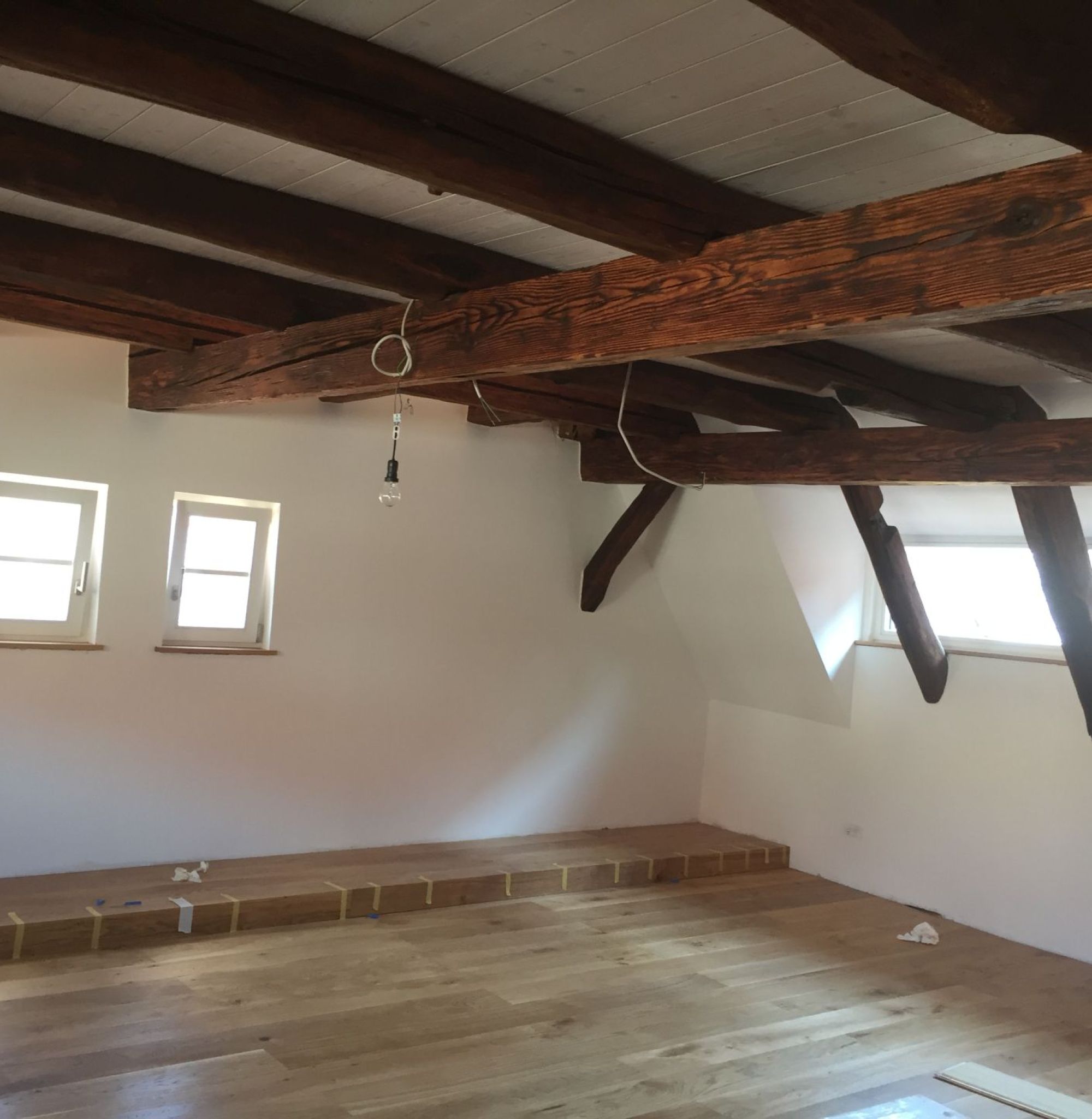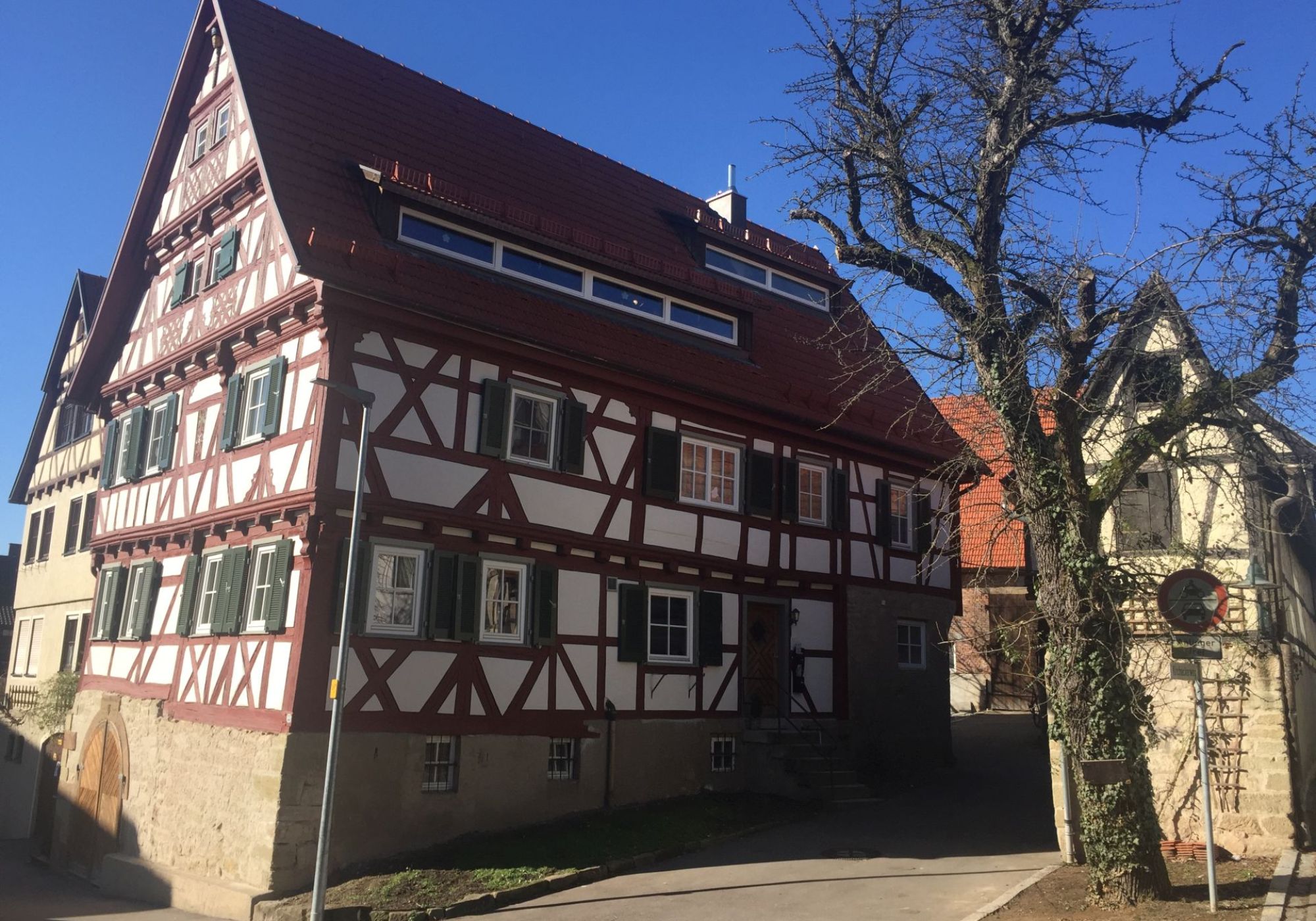 Ein ca. 400 Jahre altes, denkmalgeschütztes Fachwerkhaus wurde renoviert. Das Dachgeschoss sollte zu Wohnzwecken umgebaut werden. Die ursprüngliche, historische Tragkonstruktion durfte beim Umbau nicht verändert werden.