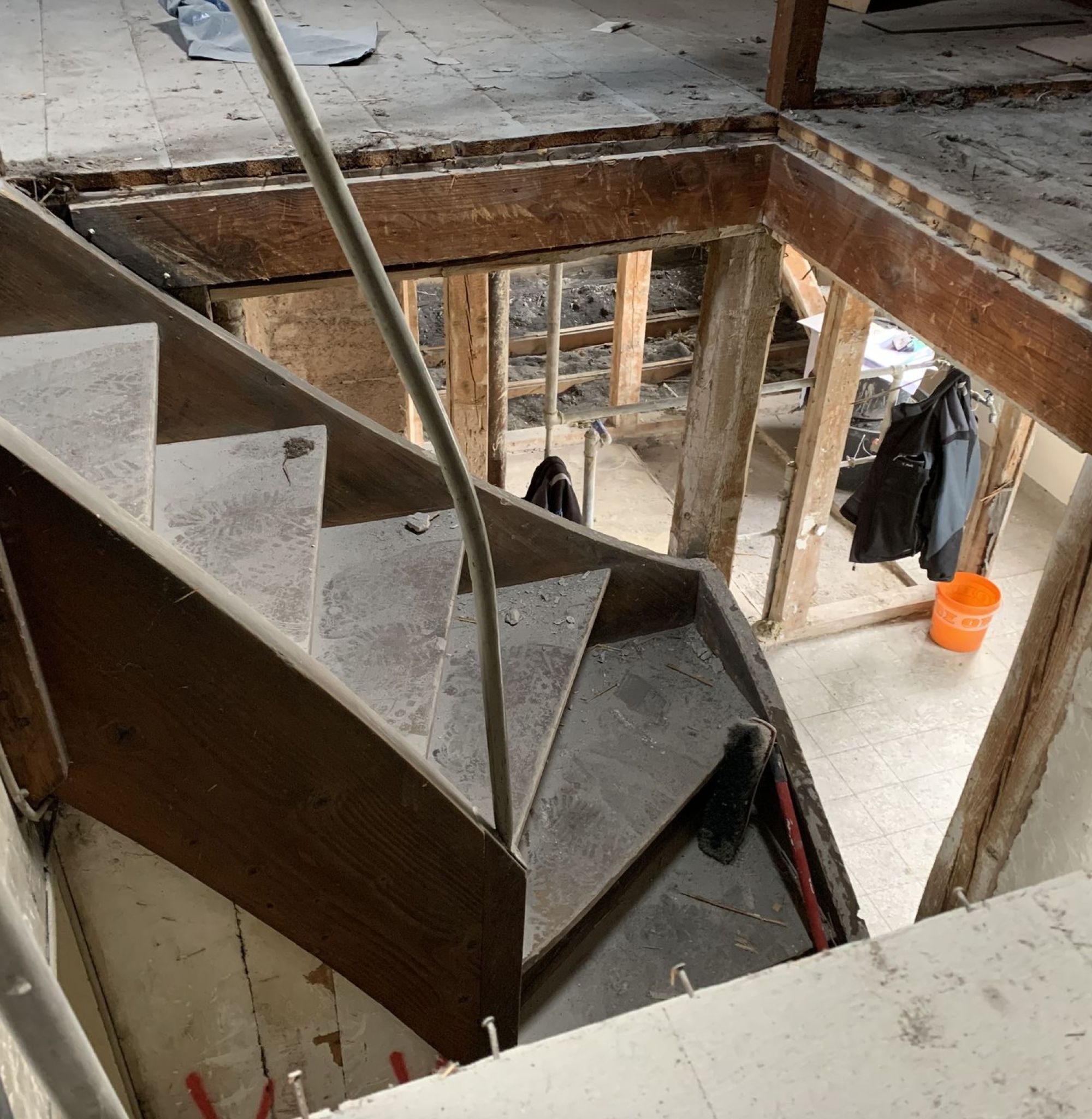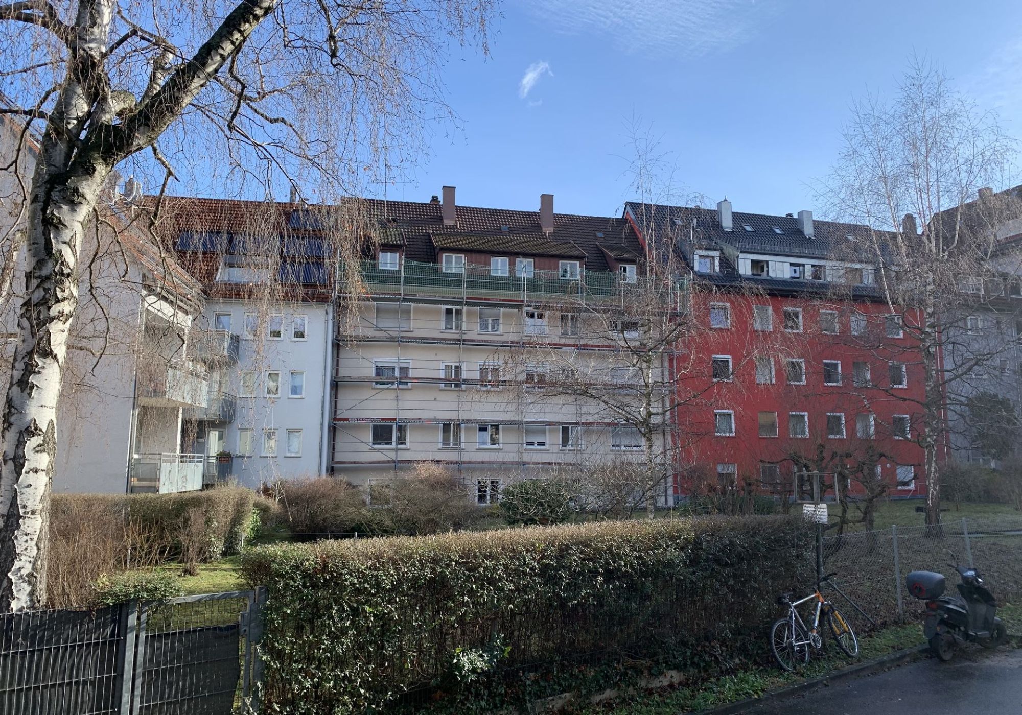 Die Umbaumaßnahmen haben infolge der, während der Umbauzeit, teilweise weiterhin genutzten Wohnungen von oben herab zu erfolgen. Die Umbaumaßnahme hat schonend und unter Minimierung von Störungen auf die Nutzung zu erfolgen. Ggf. erhält das Dach eine temporäre Noteinhausung.
