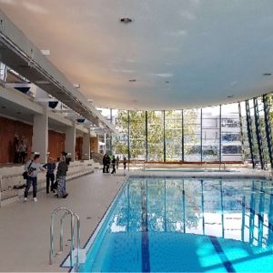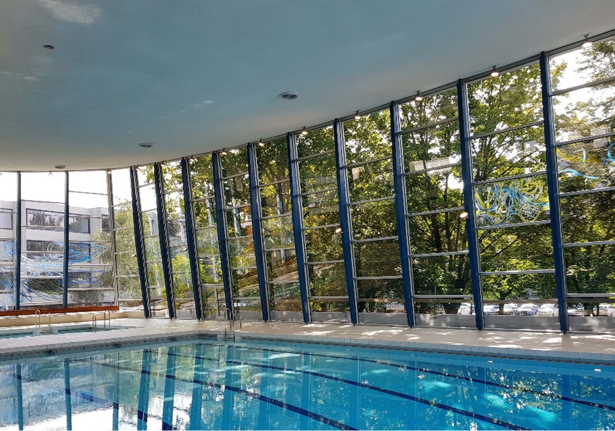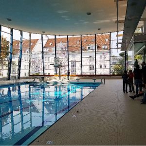 Das Hallenbad Feuerbach ist 1959-1963 nach den Plänen des Architekten Manfred Lehmbruck entstanden. Die Dachkonstruktion besteht aus einer vorgespannten extrem dünnen Hängeschale. Die große, leicht geneigte Glasfassade wurde von dem Künstler HAP Grieshaber gestaltet. Seit dem Baujahr ist das Gebäude unverändert und dringend sanierungsbedürftig. In den kommenden Jahren wird das Gebäude generalsaniert.