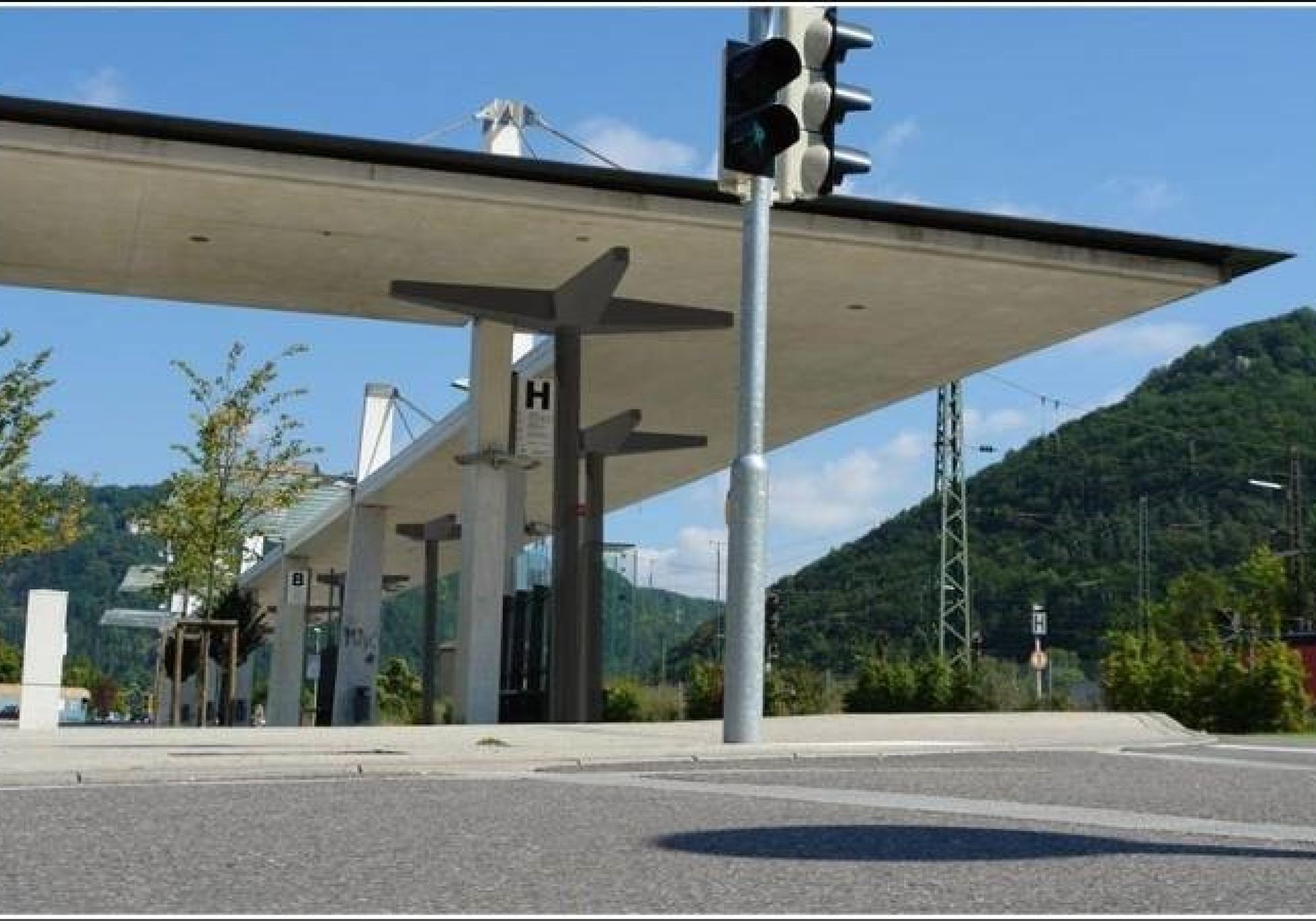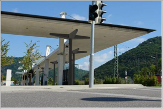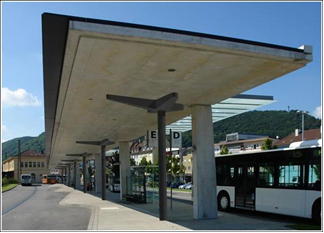 Die neue Dachkonstruktion des Busbahnhofs in Geislingen war nicht ausreichend bemessen. Nach Fertigstellung zeigten sich in den stark exzentrisch angeordneten Stützen große Verformungen und Risse. Das Dach neigte sich bedrohlich. Seitdem sind das Dach und die ganze Konstruktion mit Sprießen gesichert. Wir wurden beauftragt verschiedene Varianten zur Sanierung auszuarbeiten. Die Varianten reichen vom Total- bis zum Teilabbruch oder zu der dargestellten und aus Kostengründen ausgewählten Variante mit zusätzlichen Stützen. Bei der gezeigten Variante werden die neuen Stützen hydraulisch hochgedrückt und gleichen dabei die eingeprägte Verformung wieder aus. An der Oberseite sind Verstärkungen der Stahlbetonplatte mit aufgeklebten Stahllaschen notwendig.